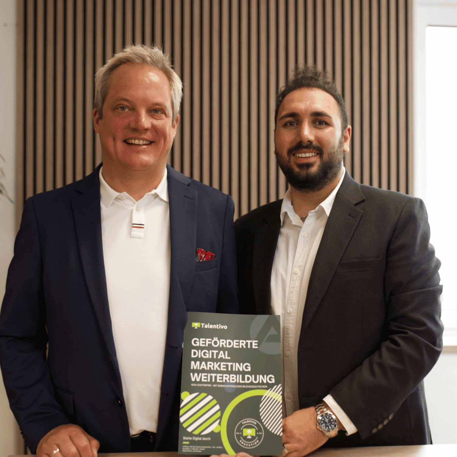 Unsere Weiterbildung ist AZAV- & GZQ-zertifiziert und damit offiziell als Maßnahme der beruflichen Weiterbildung anerkannt. Das bedeutet für dich: höchste Qualitätsstandards, geprüfte Inhalte und staatlich anerkannte Abschlüsse. Du lernst bei uns ausschließlich von erfahrenen Marketing-Expert:innen, die ihr Wissen aus realen Projekten weitergeben und dir praxisnah zeigen, wie Digital Marketing heute funktioniert.