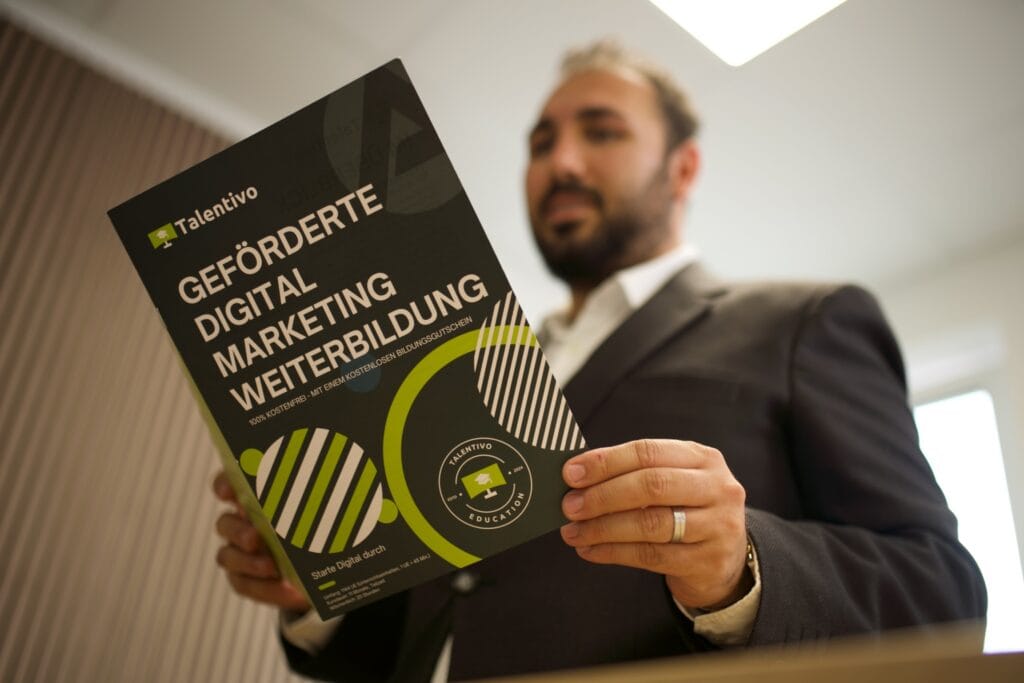 Dank Live-Sessions mit erfahrenen Dozenten, praxisorientierten Projekten und individueller Betreuung wendest du dein Wissen direkt an. Die Kosten können durch den Bildungsgutschein der Agentur für Arbeit oder das Qualifizierungschancengesetz vollständig übernommen werden. Ob als Berufseinsteiger, Quereinsteiger oder erfahrener Profi – diese Weiterbildung bringt dich auf das nächste Level deiner Karriere im Digital Marketing.